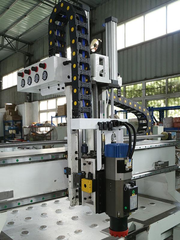 El centro de trabajo CNC de tres ejes posee un almacén de herramientas circular que puede albergar 8 cuchillas a la vez y cambiarlas automáticamente en un tiempo de 6 segundos. El sistema de conmutación integrado garantiza la identificación precisa del portaherramientas y la administración de la herramienta. Sus piezas claves importadas de marcas reconocidas a nivel mundial como el husillo de bolas, el carril-guía lineal, los componentes neumáticos, y los dispositivos electrónicos logran una gran estabilidad y un óptimo resultado. Este centro de mecanizado CNC utiliza entre otros, el husillo electrónico HSD de Italia, la bomba de vacío UP JOHN y el servo-accionamiento DELTA.